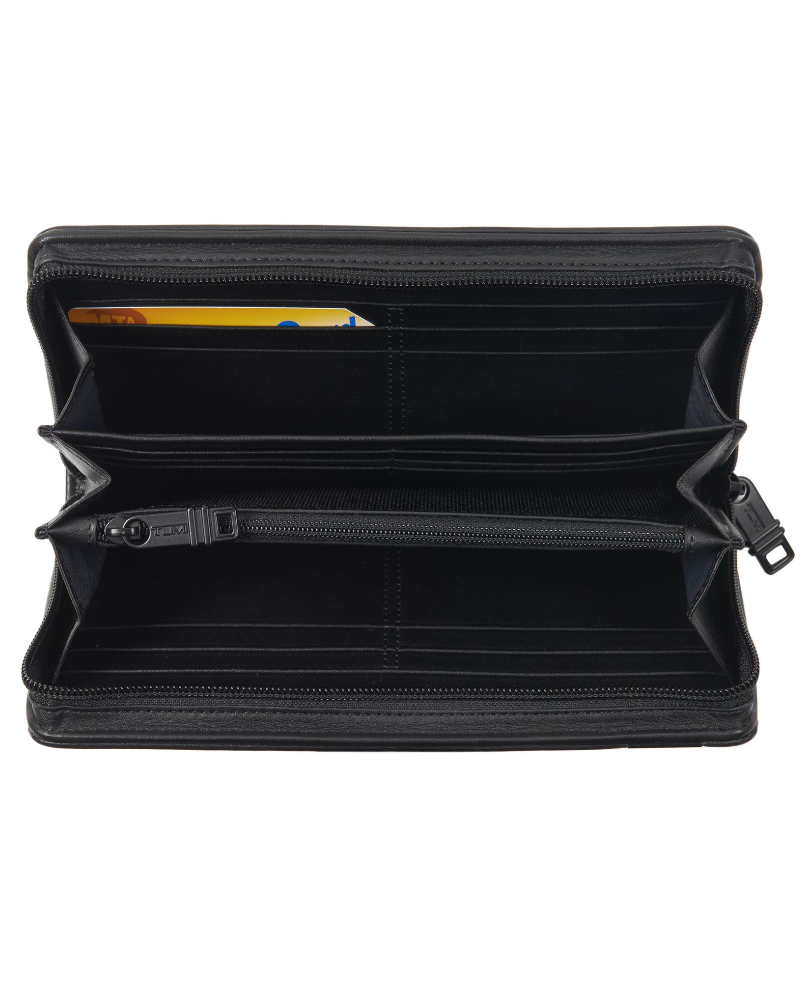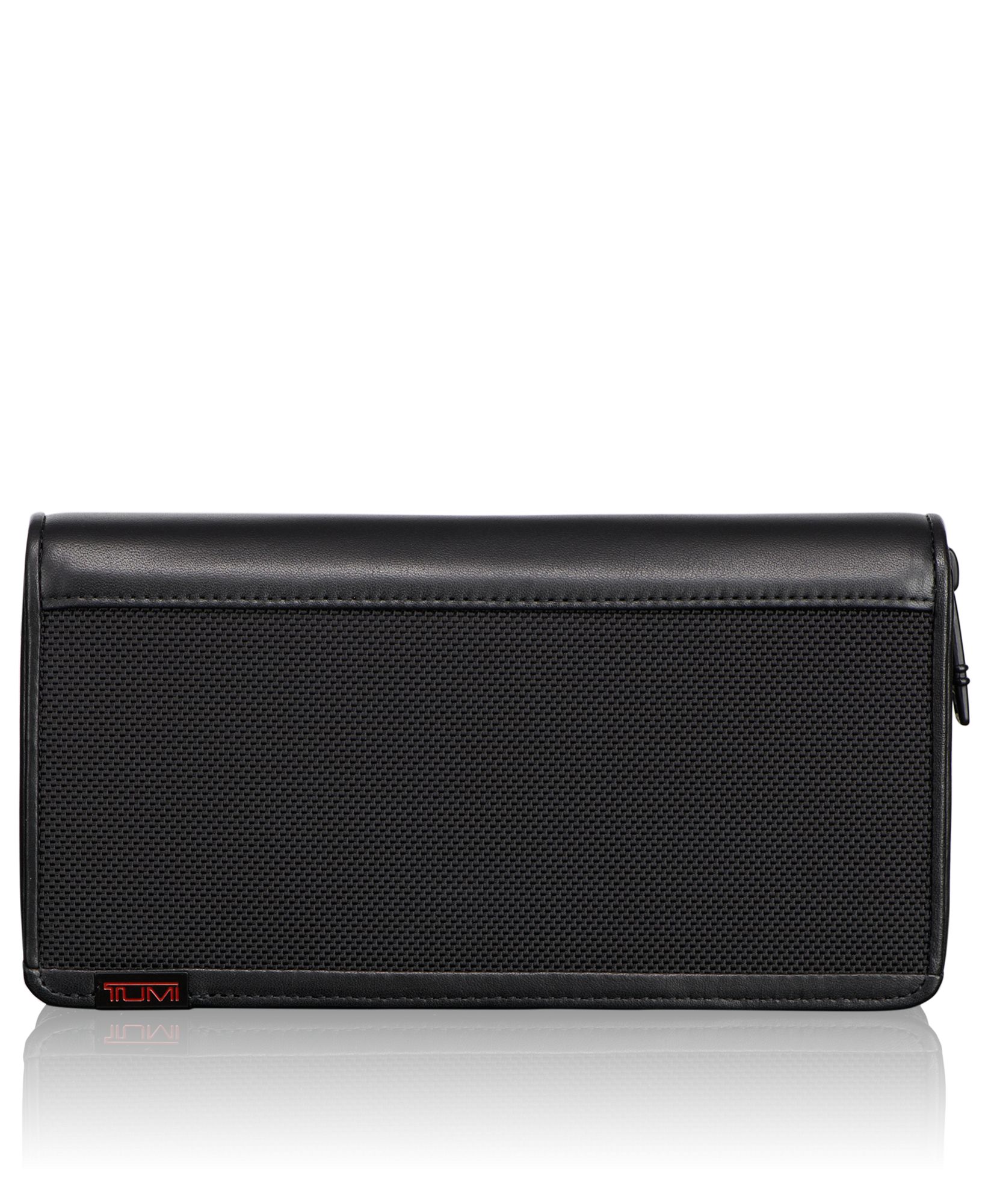 Mantenha os seus documentos de viagem seguros e sempre à mão com esta carteira larga com fecho de correr. Com vários compartimentos para guardar os seus cartões de crédito, documentos de identificação e dinheiro. Elaborada com tecido nylon balístico e acabamentos em pele característicos da coleção Tumi Alpha.