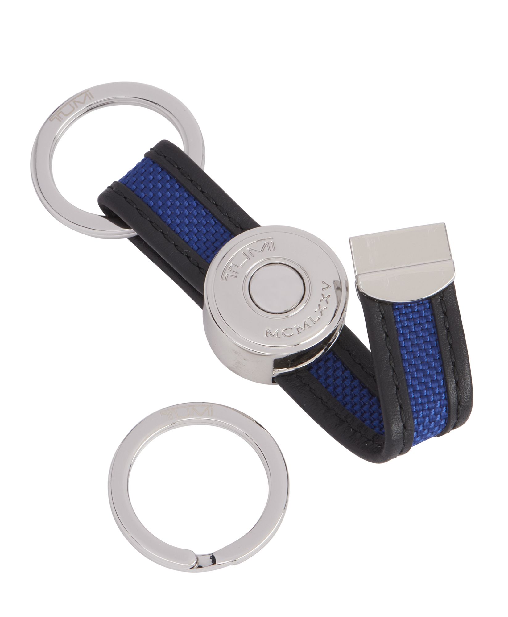 Desenhado para complementar as mochilas e malas de viagem da coleção Alpha, este porta-chaves disponível em pele ou nylon balístico com um centro circular metalizado e anéis em aço inox para colocar as chaves. Com um simples pressionar do botão central é possível remover a parte que suporta as chaves.