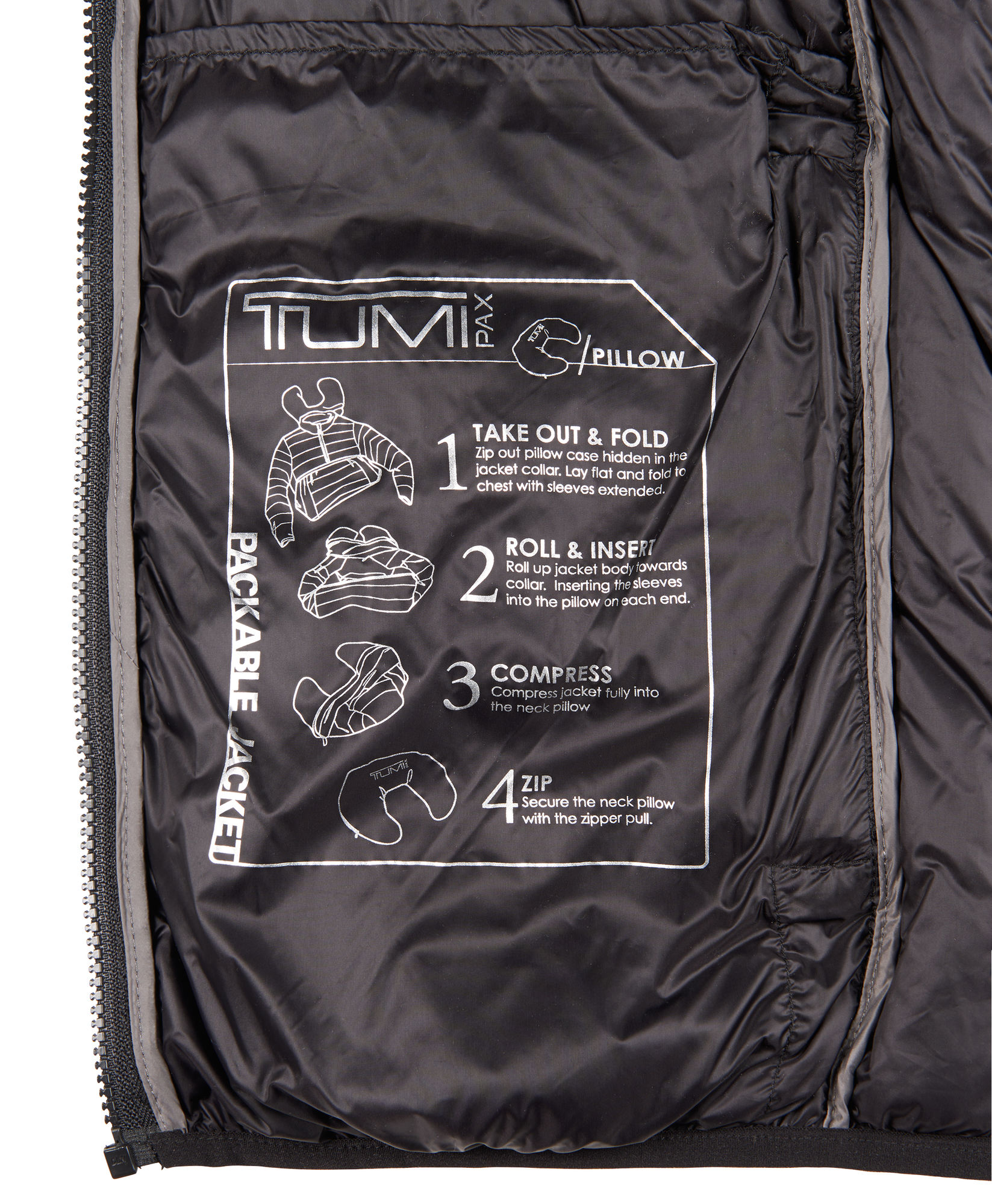 Com base na fórmula com assinatura Tumi, EG5, a coleção de roupas desportivas incorpora cinco elementos essenciais de design e estilo: mobilidade, engenharia, funcionalidade, forma e versatilidade. Detalhes atenciosos, materiais de alta tecnologia e tecidos resistentes à água foram usados para criar esta peça de roupa sofisticada e ideal para as suas viagem ou para o dia-a-dia. Mais do que um blusão muito quente e leve, também se converte numa almofada de viagem quando dobrado e colocado sobre uma bolsa escondida no colarinho (patente Tumi pendente). Feito com nylon leve e resistente á água. A nossa coleção de vestuário utiliza materiais de fontes que seguem o padrão de responsabilidade social. Isso garante que a principal fonte desses materiais, os animais, tenham segurança e proteja o bem-estar dos gansos e patos que oferecem penas e penugens para o interior. Disponível no tamanho S-XXL masculino.