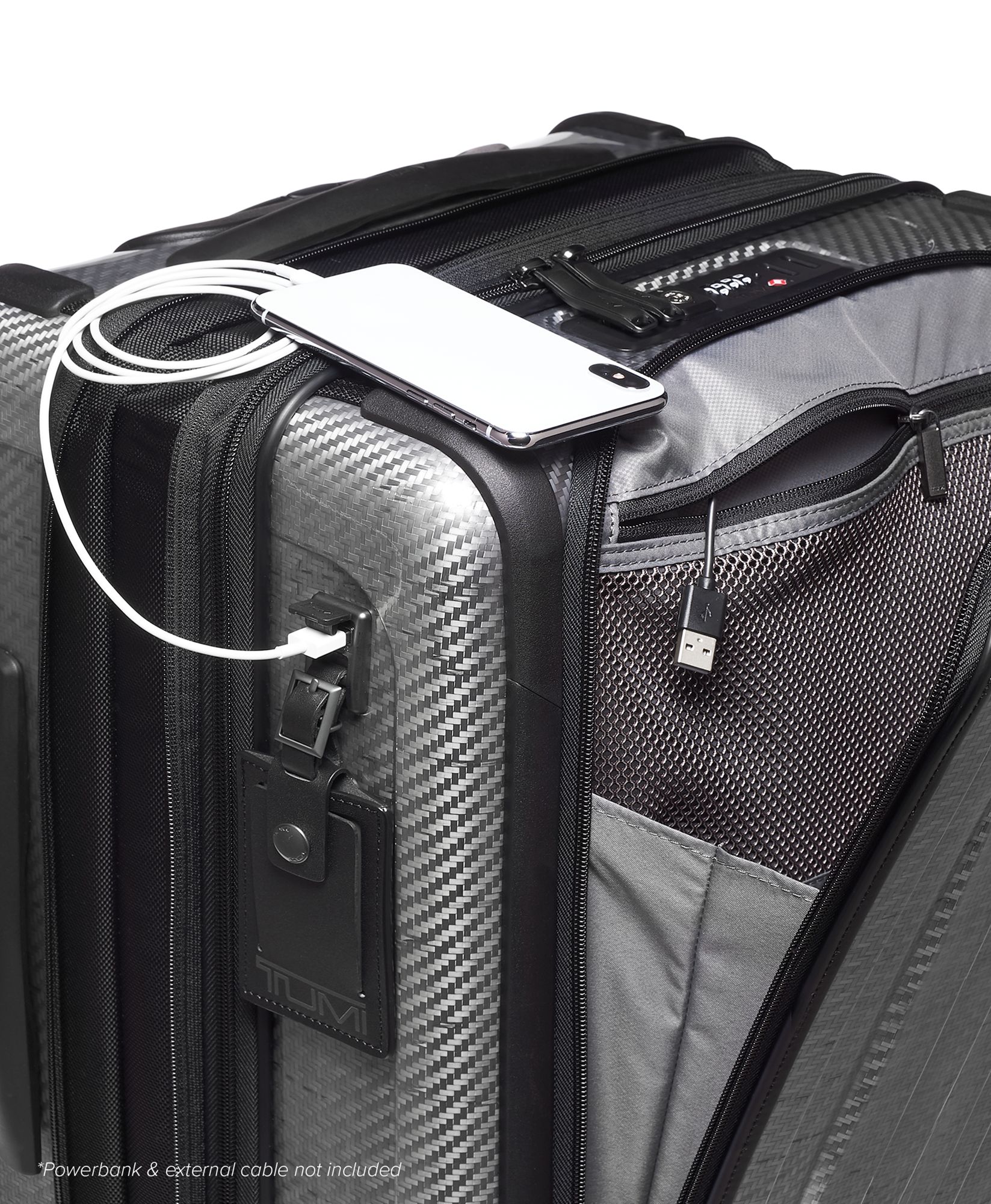 Alguns modelos selecionados trazem um colorido kit opcional da Tumi Accents, desde etiqueta de bagagem, capa para alça, puxadores de fecho e etiqueta de gravação personalizada, disponíveis por um custo adicional.