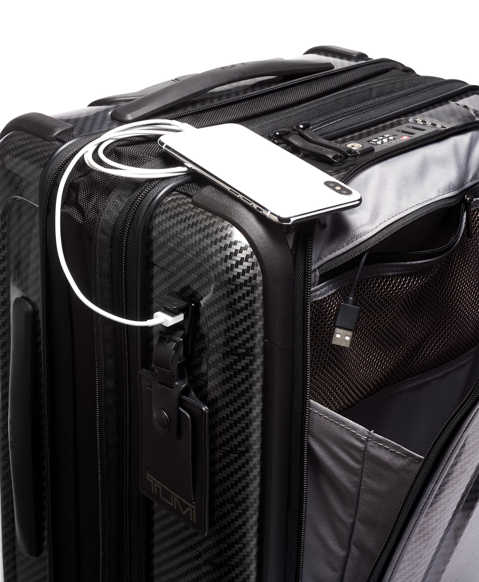 Alguns modelos selecionados trazem um colorido kit opcional da Tumi Accents, desde etiqueta de bagagem, capa para alça, puxadores de fecho e etiqueta de gravação personalizada, disponíveis por um custo adicional.