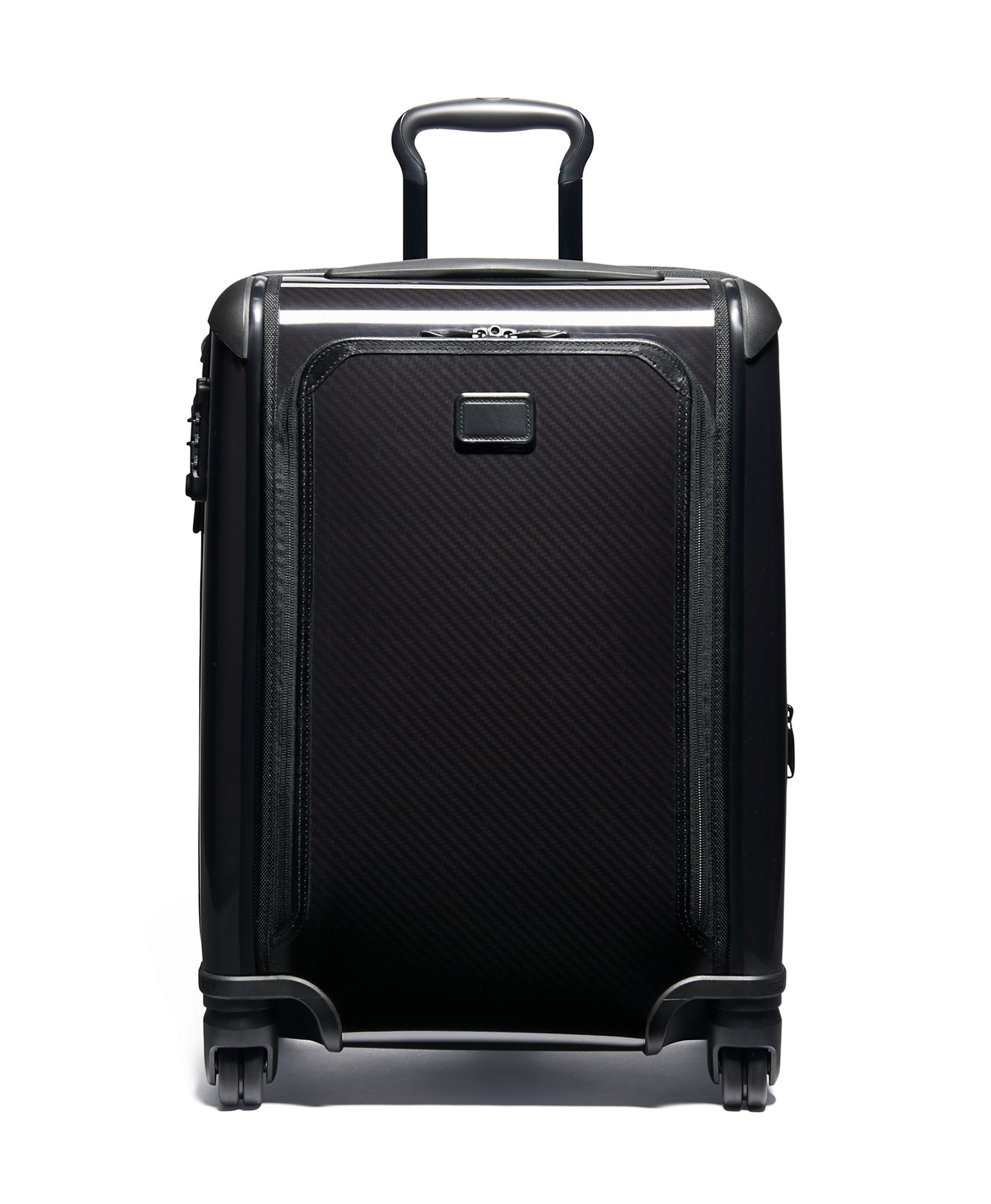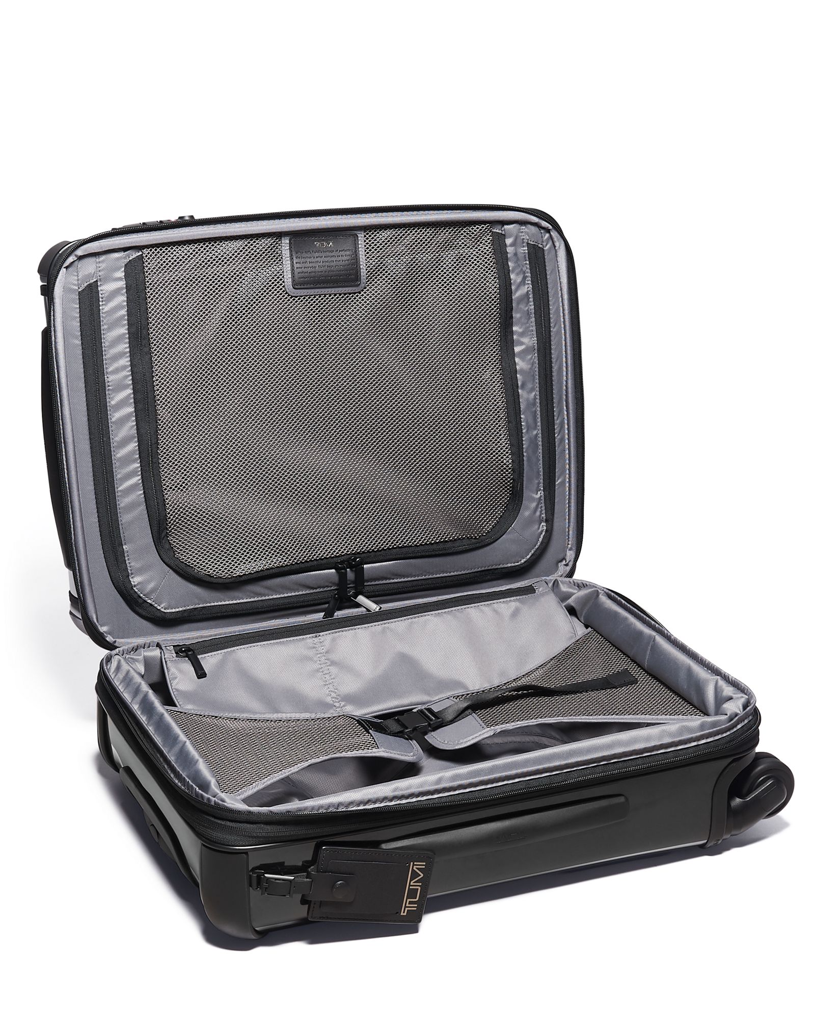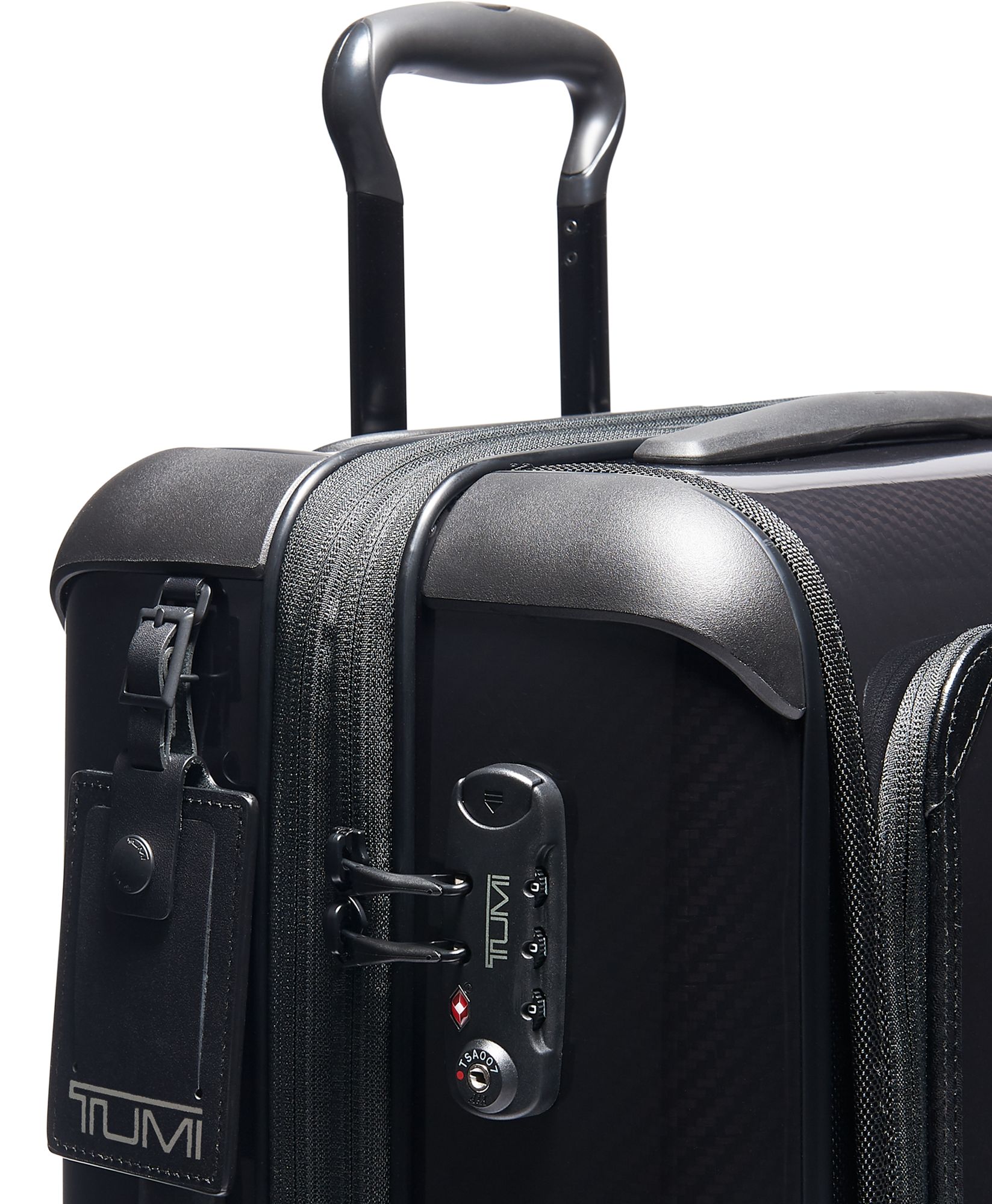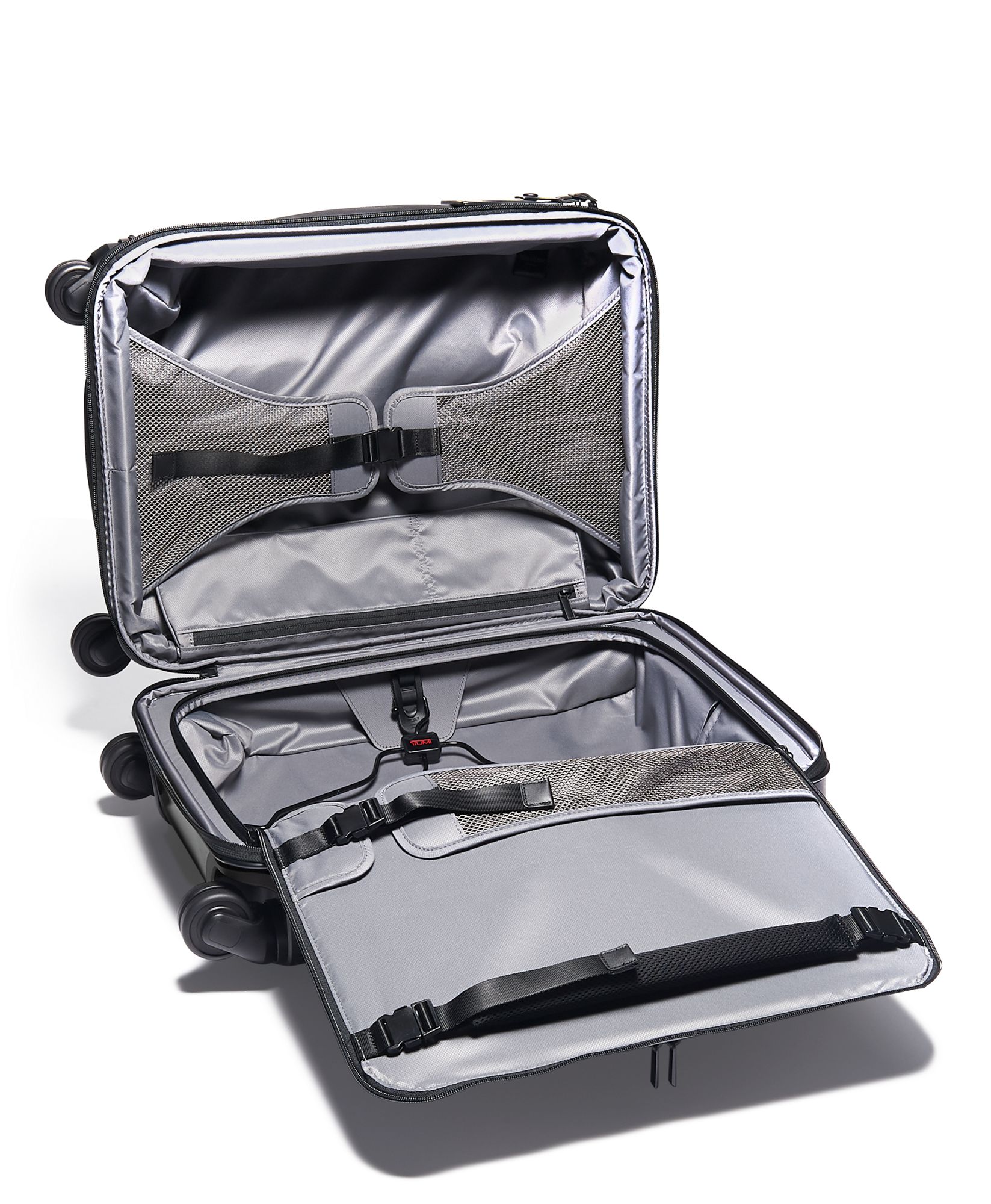 A mala de cabine Tegra-Lite® Max é a mala mais resistente e funcional feita até hoje. Tem a possibilidade de expansão sempre que necessitar de espaço extra, um bolso frontal espaçoso e acessível, além disso, tem um deslizar suave 360º graças às 4 rodas duplas. Fabricada a partir de Tegris®, um material compósito termoplástico revolucionário de polipropileno criado pela Milliken®, também utilizado no fabrico de armaduras que salvam vidas, carros de corrida da Nascar e equipamentos de proteção de jogadores da NFL. A Tumi tem a exclusividade para a utilização deste material no fabrico das suas malas. Se procura uma mala de cabine expansível para qualquer tipo de viagem, esta mala é indicada para si. Dispõe de dois ganchos para colocar cabides (disponíveis para compra em separado).