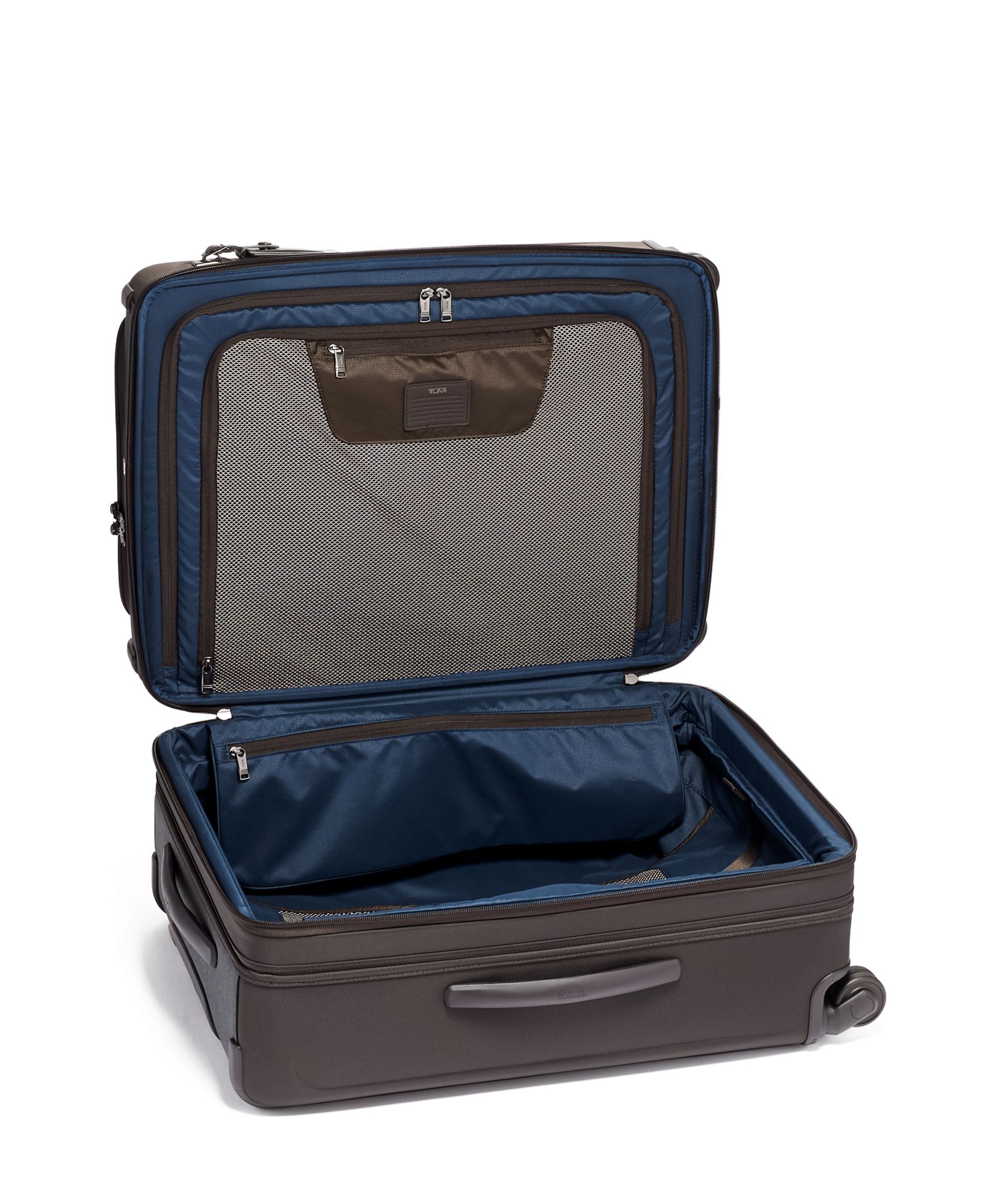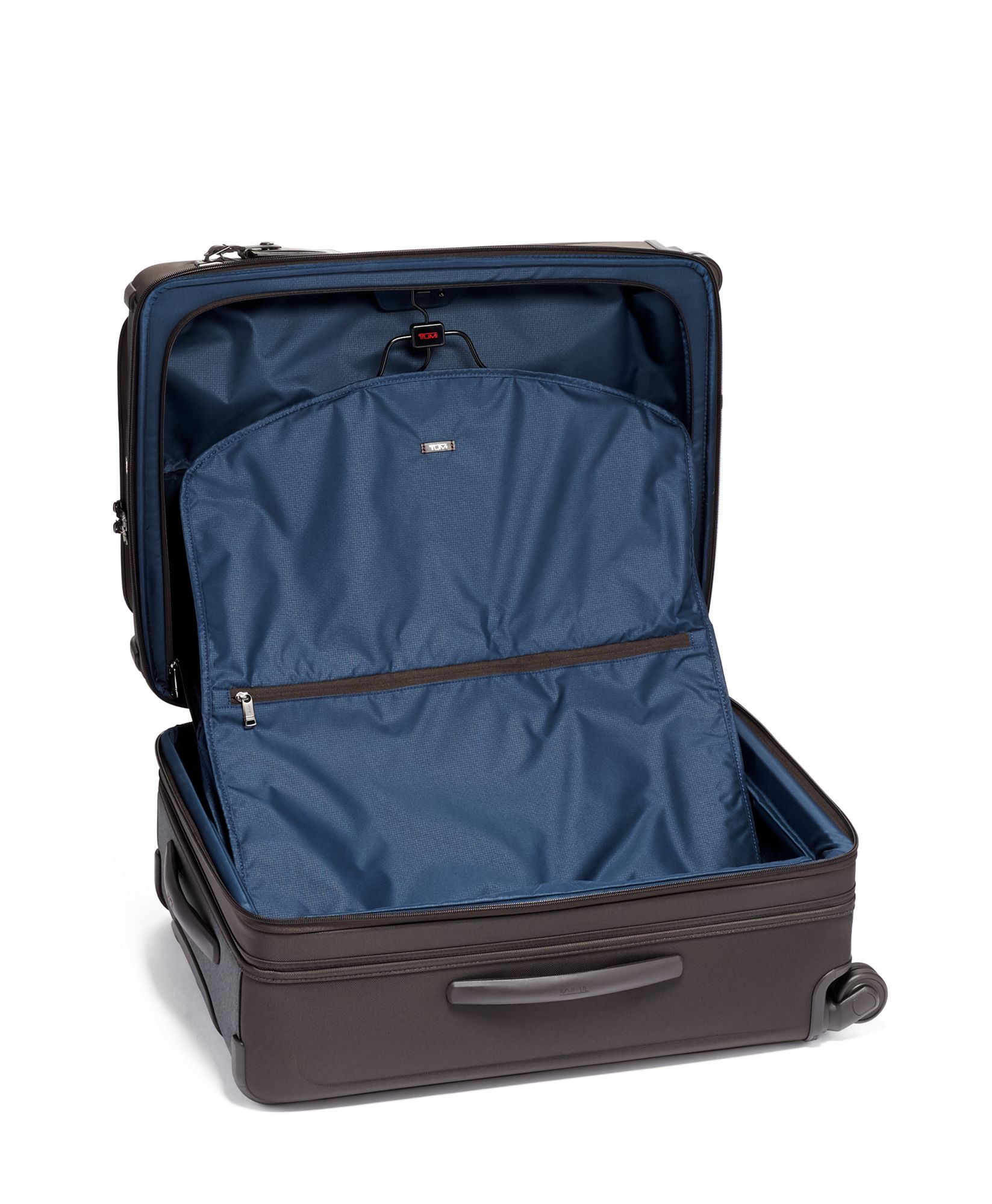 Esta versátil mala de viagem de 4 rodas com um compartimento principal expansível é ideal para viagens até 10 dias. Inclui uma capa porta-fatos removível. Note que o cabide mostrado na imagem é vendido separadamente. O sistema de expansão Lever Lock™ da Tumi permite até 5 cm de espaço adicional. Os práticos bolsos interiores e exteriores mantêm os essenciais organizados e à mão.