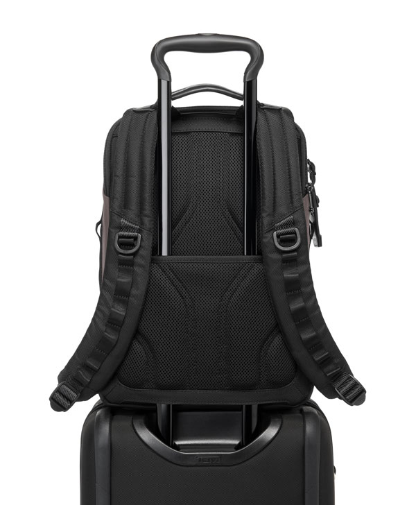 Com presilhas frontais, nas alças de ombro e proteções laterais compatíveis com acessórios TUMI+;