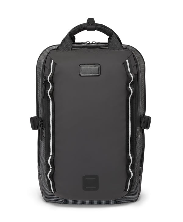 Fecho de correr no compartimento principal; Compartimento acolchoado para portátil de 15" com acesso através de fecho de correr; Correias de compressão laterais ajustáveis com ganchos em G; Correias ajustáveis para a mochila; Painel traseiro moldado em EVA para ventilação; Alça para o esterno amovível e ajustável; Alça para adicionar um saco; Bolso frontal grande expansível com fecho em U resistente à água; Bolso frontal com fecho de correr; Bolso traseiro de acesso rápido com fecho magnético oculto; Pega de transporte superior em tecido; Correntes de margarida compatíveis com acessórios TUMI+; Remendo frontal soldado para fixação de luz de bicicleta; Patch com monograma.