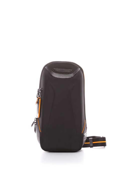tecnologia. Reproduzindo o design aerodinâmico, esta Bolsa Sling apresenta um elegante painel frontal moldado, detalhes em fibra de
