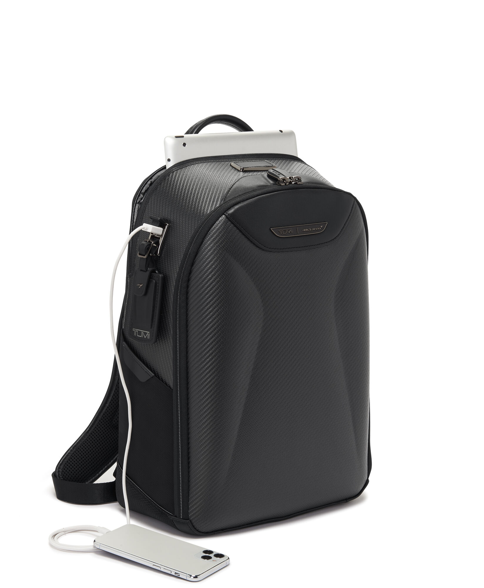tecnologia. Reproduzindo o design aerodinâmico e incorporando os elementos dos elegantes e ousados supercarros e carros de corrida McLaren, esta Mochila para Portátil apresenta um elegante painel frontal semirígido moldado, em fibra de carbono CFX. Com compartimento acolchoado para portátil e porta USB integrada, estará conectado durante as suas viagens mais longas.