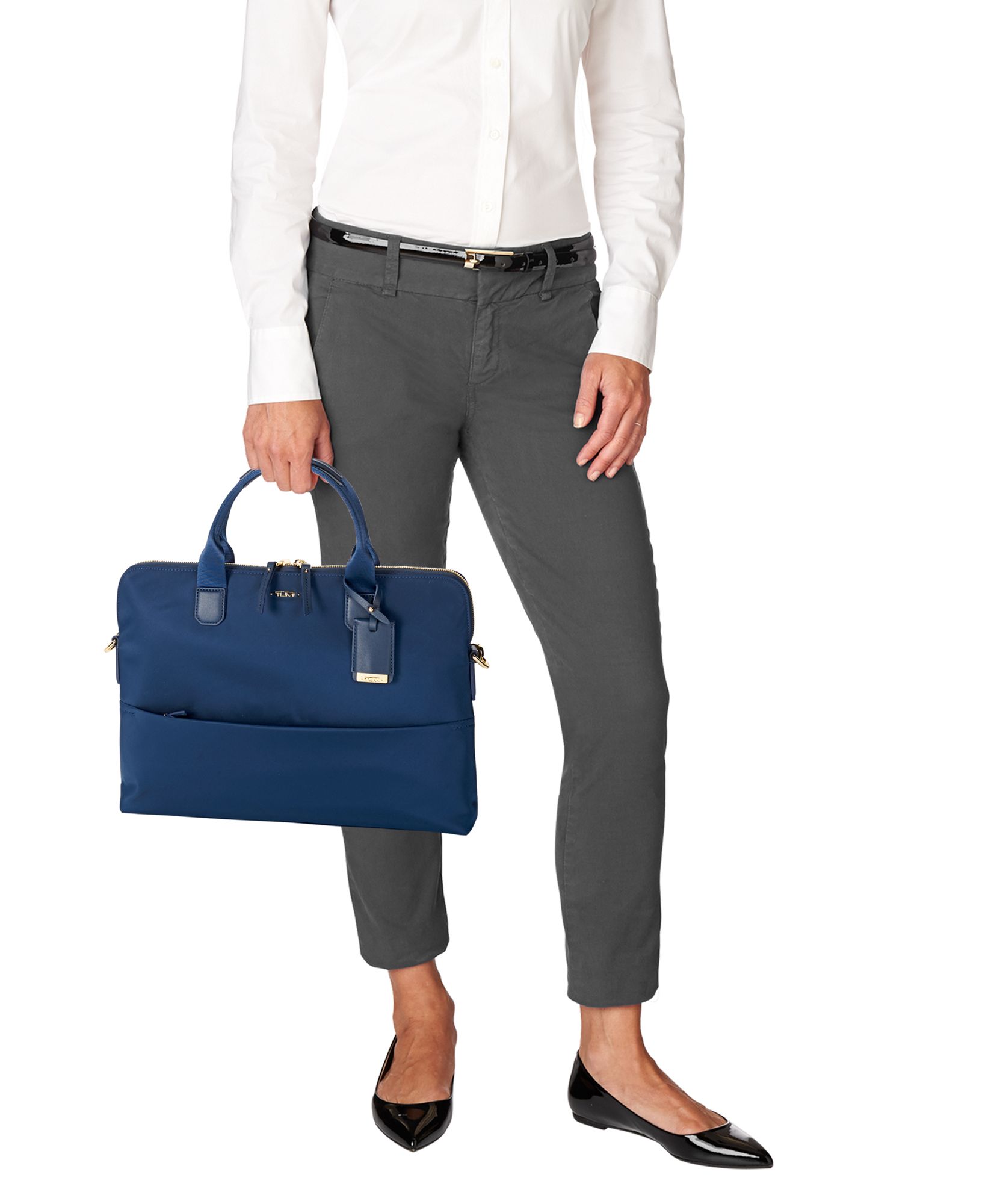 Ideal para o trabalho ou para viajar, esta pasta acomoda um computador para portátil até 15” e dispõe de um bolso frontal com fecho de correr de fácil acesso. Graças à alça removível tanto pode ser utilizada como pasta tiracolo, ou como pasta de mão. Versátil, leve e com um design prático que não compromete a elegância.