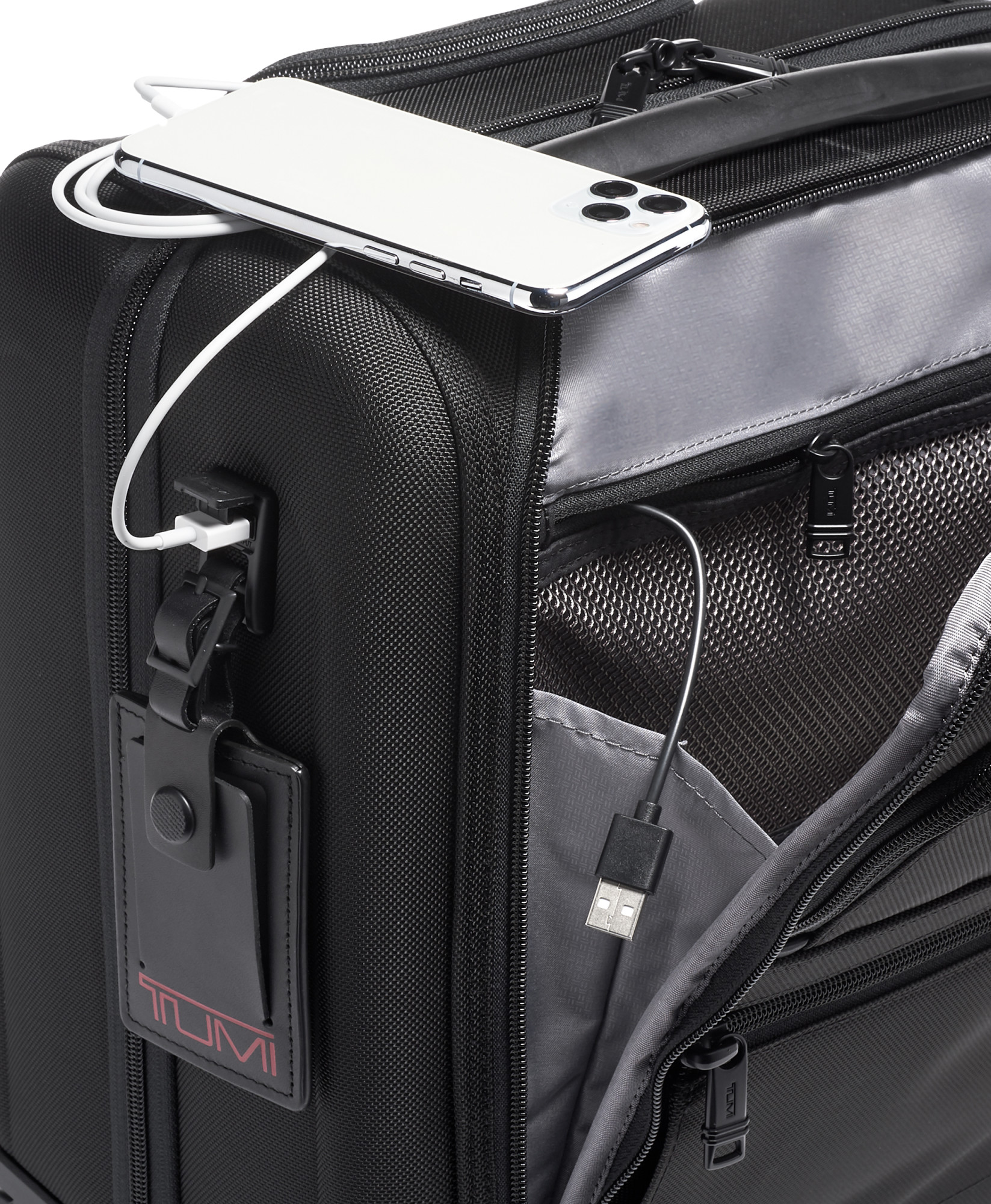 A possibilidade de a transportar como pasta ou como mala com rodas dá-lhe flexibilidade para onde quer que vá. O encaixe na pega telescópica permite-lhe transportar outra bagagem por cima. Inclui uma porta USB incorporada para ligação em viagem, bem como uma divisória removível para documentos/compartimento para portátil.