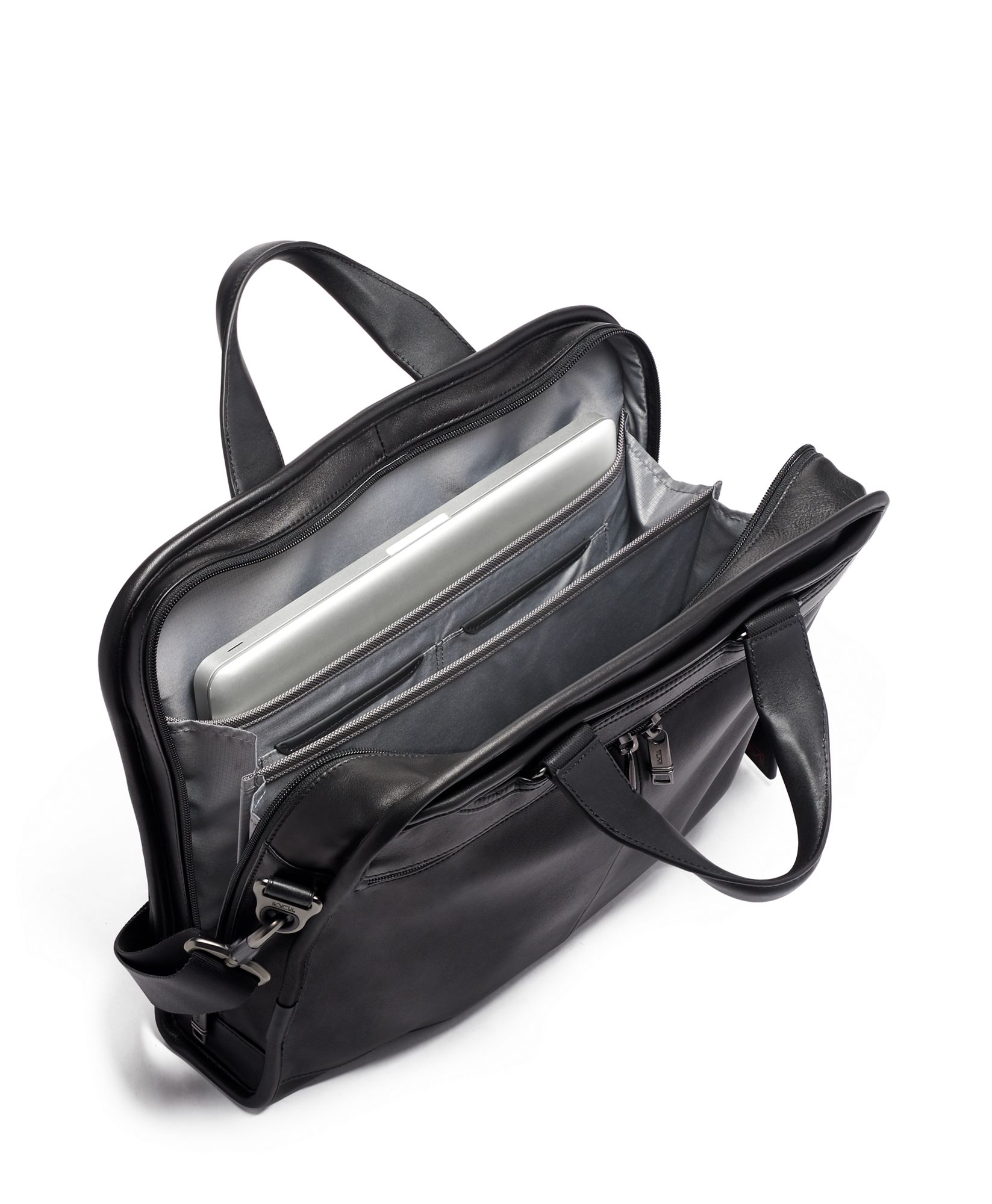 Ideal para a sua utilização diária, este porta-documentos em pele otimiza a organização e o conforto. O compartimento principal possui uma divisória para documentos, bem como um bolso acolchoado para tablet e vários bolsos para os seus acessórios tecnológicos.