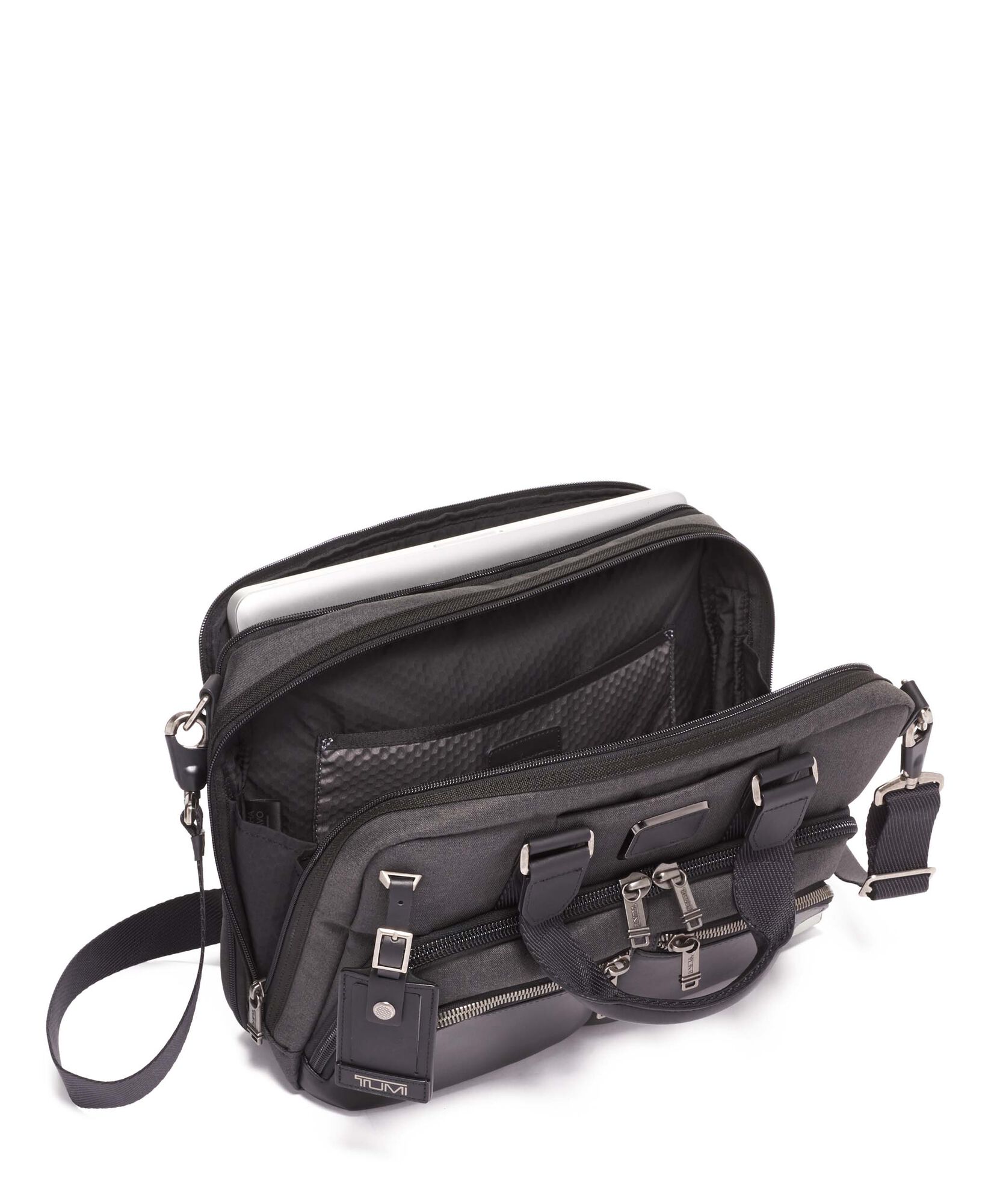 Esta pasta dispõe de um compartimento para o seu computador portátil e outro compartimento para os acessórios e documentos. Sempre que precisar de espaço adicional pode expandir a sua pasta. Possui diversos bolsos interiores e exteriores e um bolso para o seu tablet. A alça de ombro ajustável pode ser removida caso pretenda utilizar a pasta com uma silhueta mais elegante.