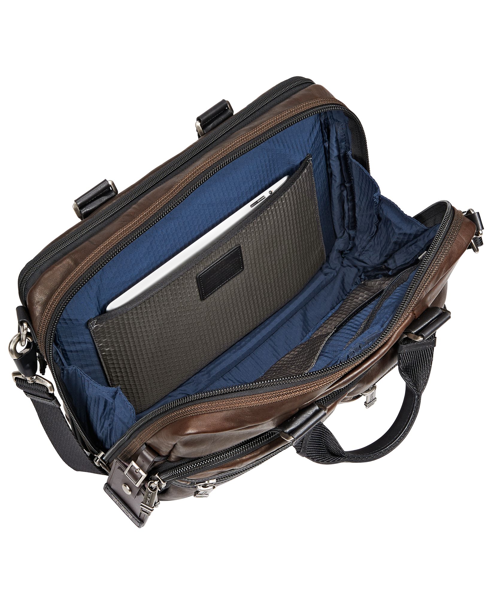Esta pasta dispõe de um compartimento para o seu computador portátil e outro compartimento para os acessórios e documentos. Sempre que precisar de espaço adicional pode expandir a sua pasta. Possui diversos bolsos interiores e exteriores e um bolso para o seu tablet. A alça de ombro ajustável pode ser removida caso pretenda utilizar a pasta com uma silhueta mais elegante.