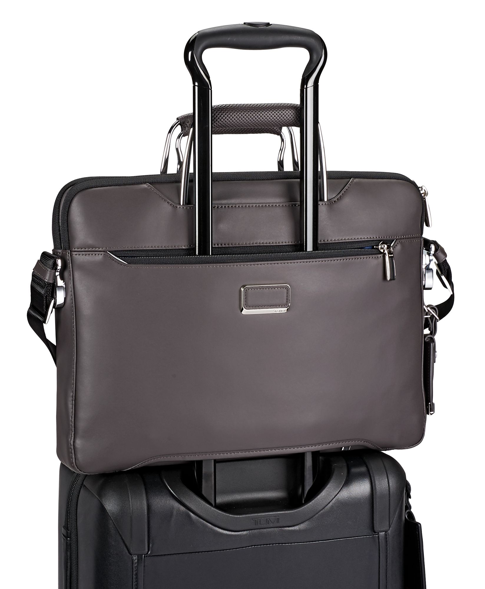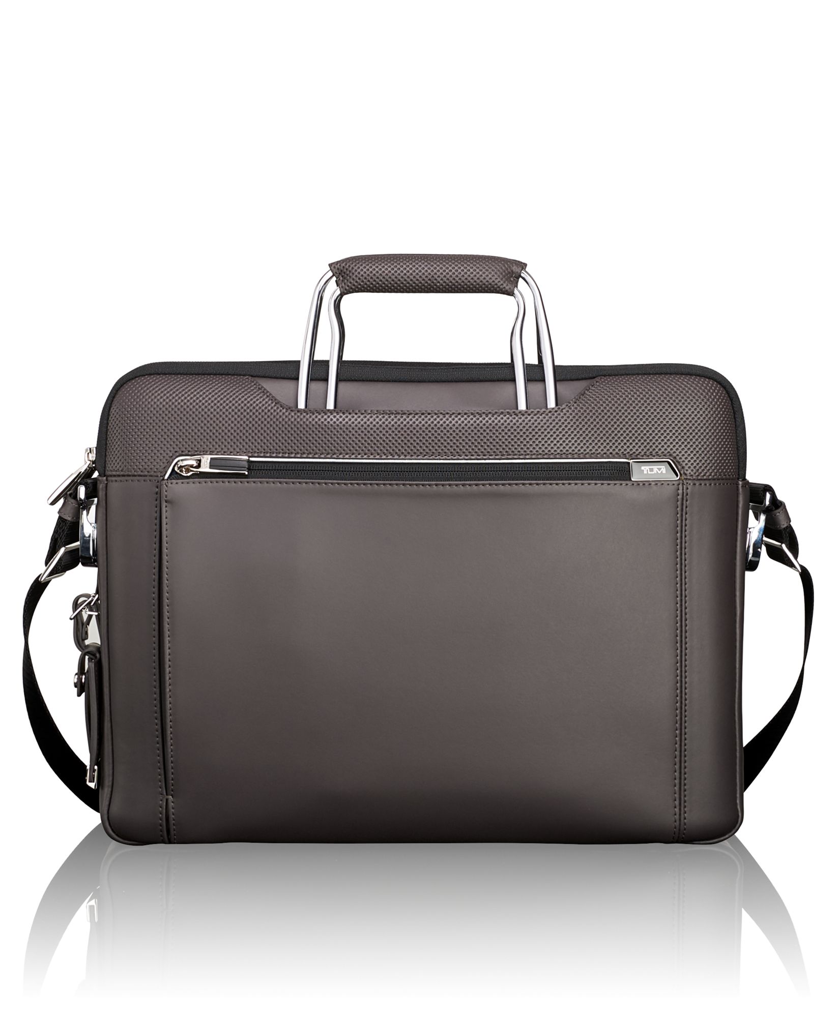 A pasta em pele da coleção Arrivé da Tumi tem um compartimento para portátil de 15 polegadas e permite usar ao ombro ou tiracolo através da alça de ombro removível. Com pegas cromadas de alto brilho e elegantes fechos magnéticos. Uma excelente alternativa à sua mochila ou pasta diária para viajar tranquilamente e mais leve.