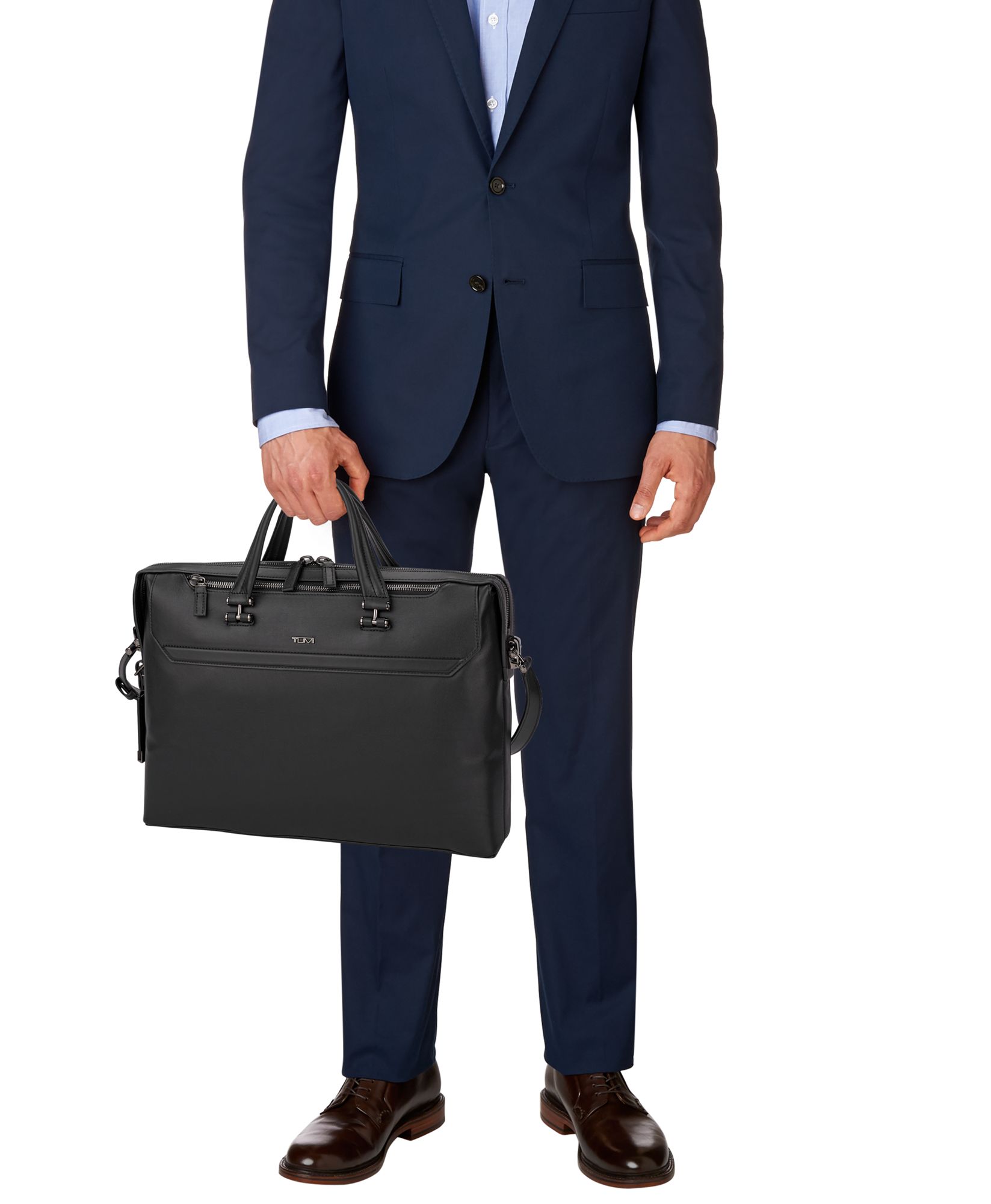 Eleve o seu dia a dia com a elegante e durável pasta para portátil 15" em pele, Benton, da coleção Ashton. Projetada para acrescentar estilo e conveniência e transportar tudo o que necessita, desde computador portátil, tablet e outros itens essenciais para o seu trabalho. Use-a com a alça de ombro removível ou pega de mão.