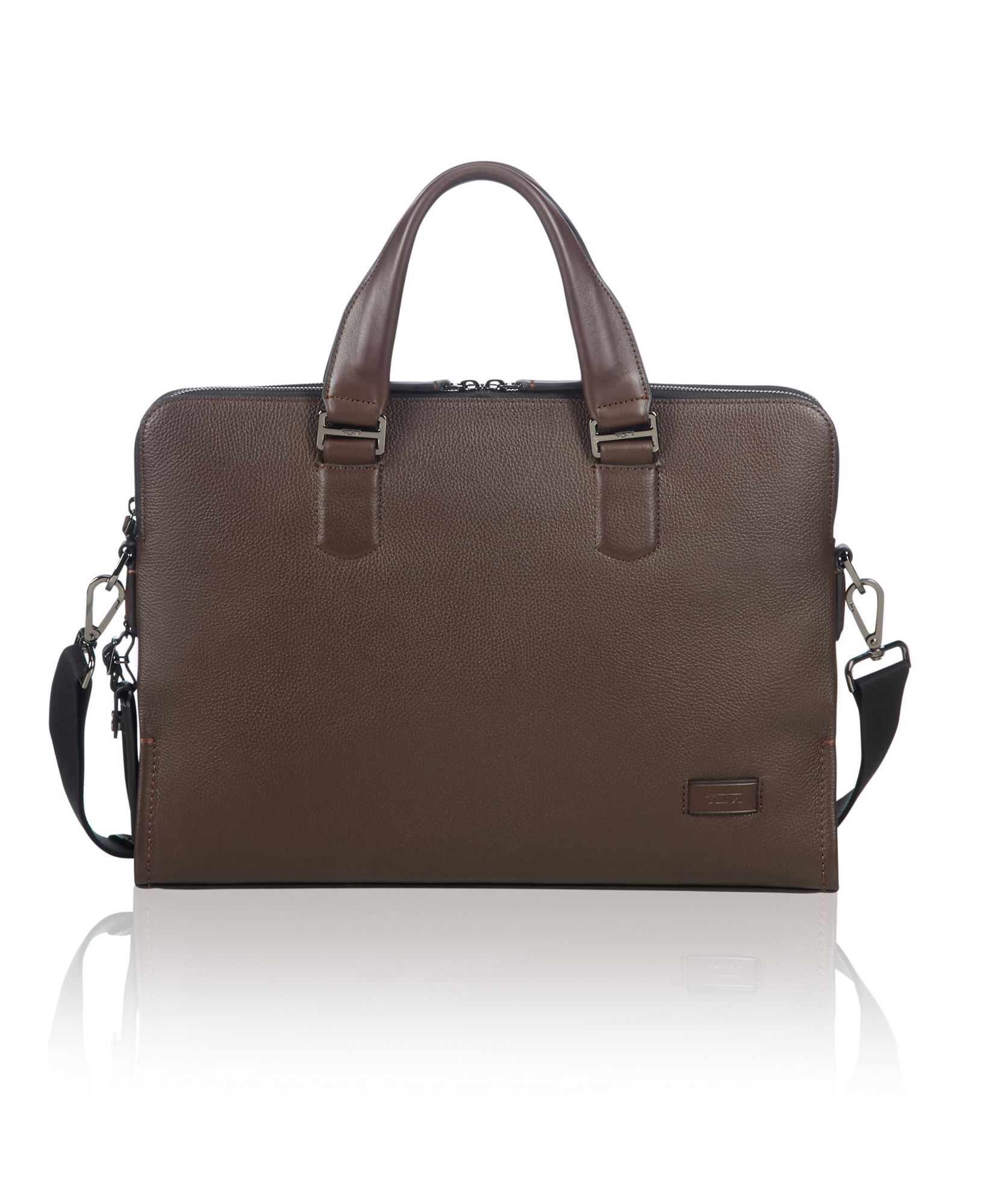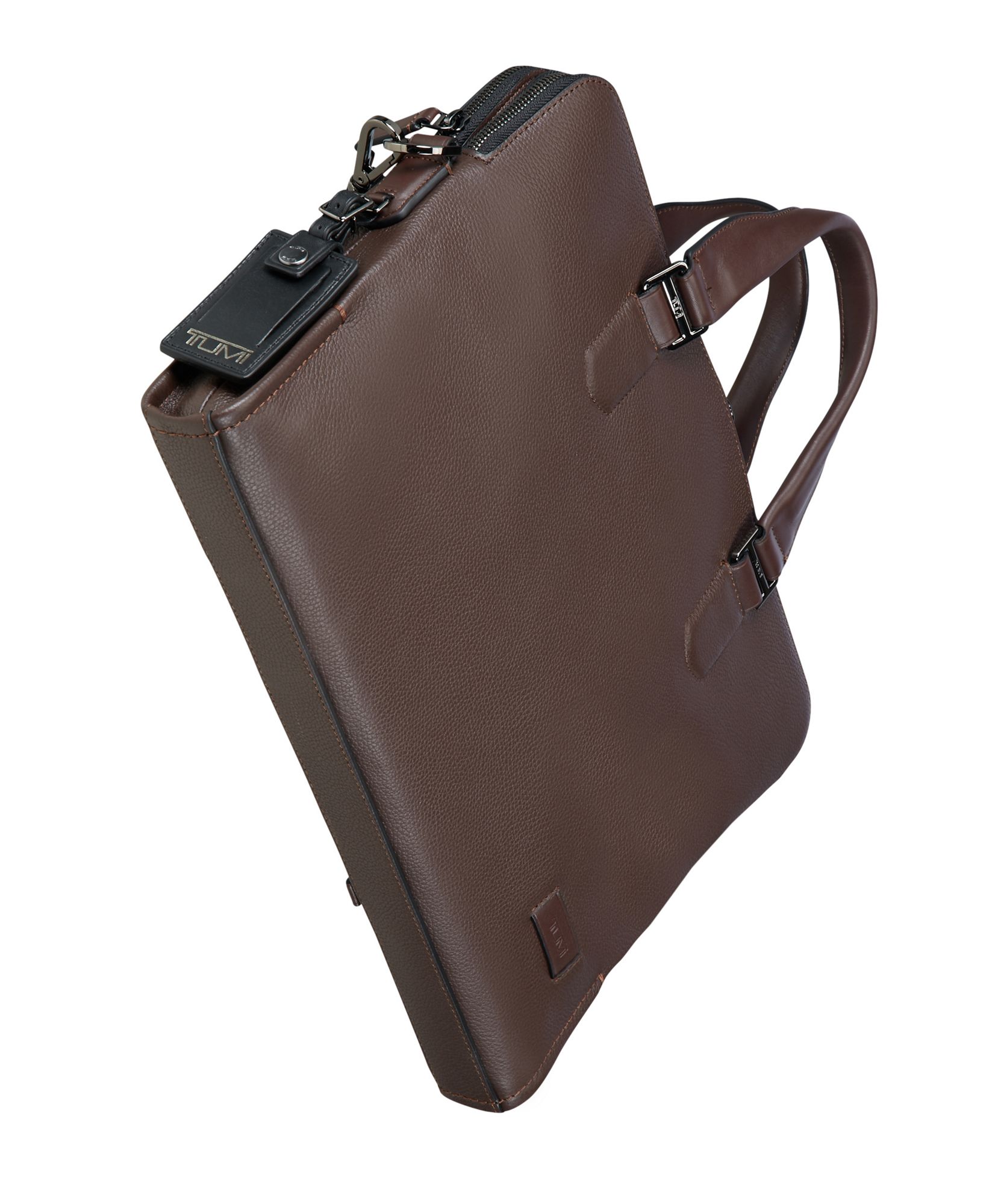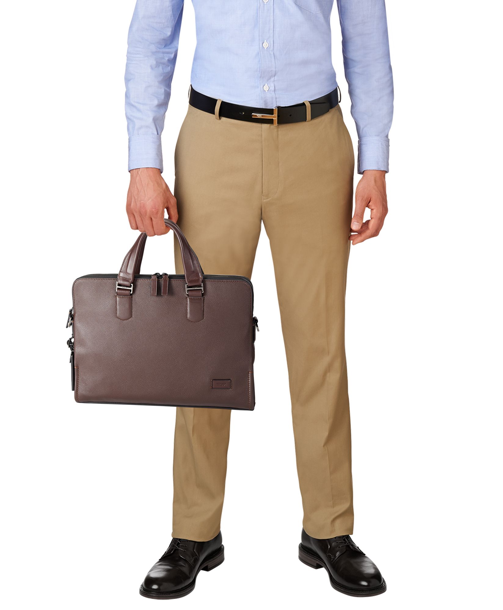 Uma pasta elegante em pele, que define o estilo urbano de quem está sempre em movimento. Parte da coleção Harrison, que possui uma sofisticada gama de bolsas e acessórios para o dia a dia, altamente projetada, com design contemporâneo e moderno. Dispõe de um fecho de correr duplo e de um amplo espaço para organizar o computador portátil, o iPad e os outros itens essenciais para o seu dia, facilitando as suas viagens pendulares.